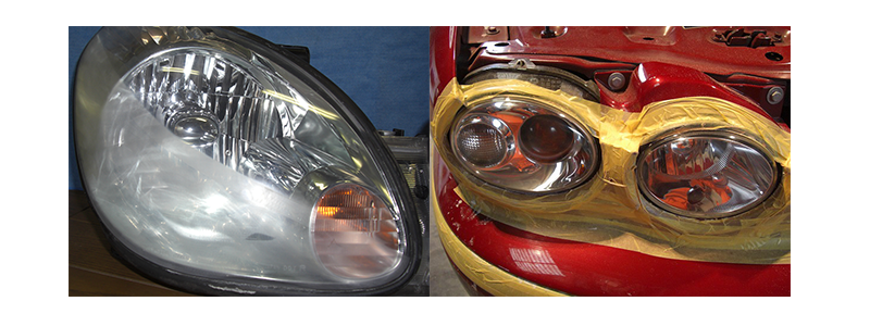 ヘッドライトの黄ばみを磨いて除去、保護コーティング
